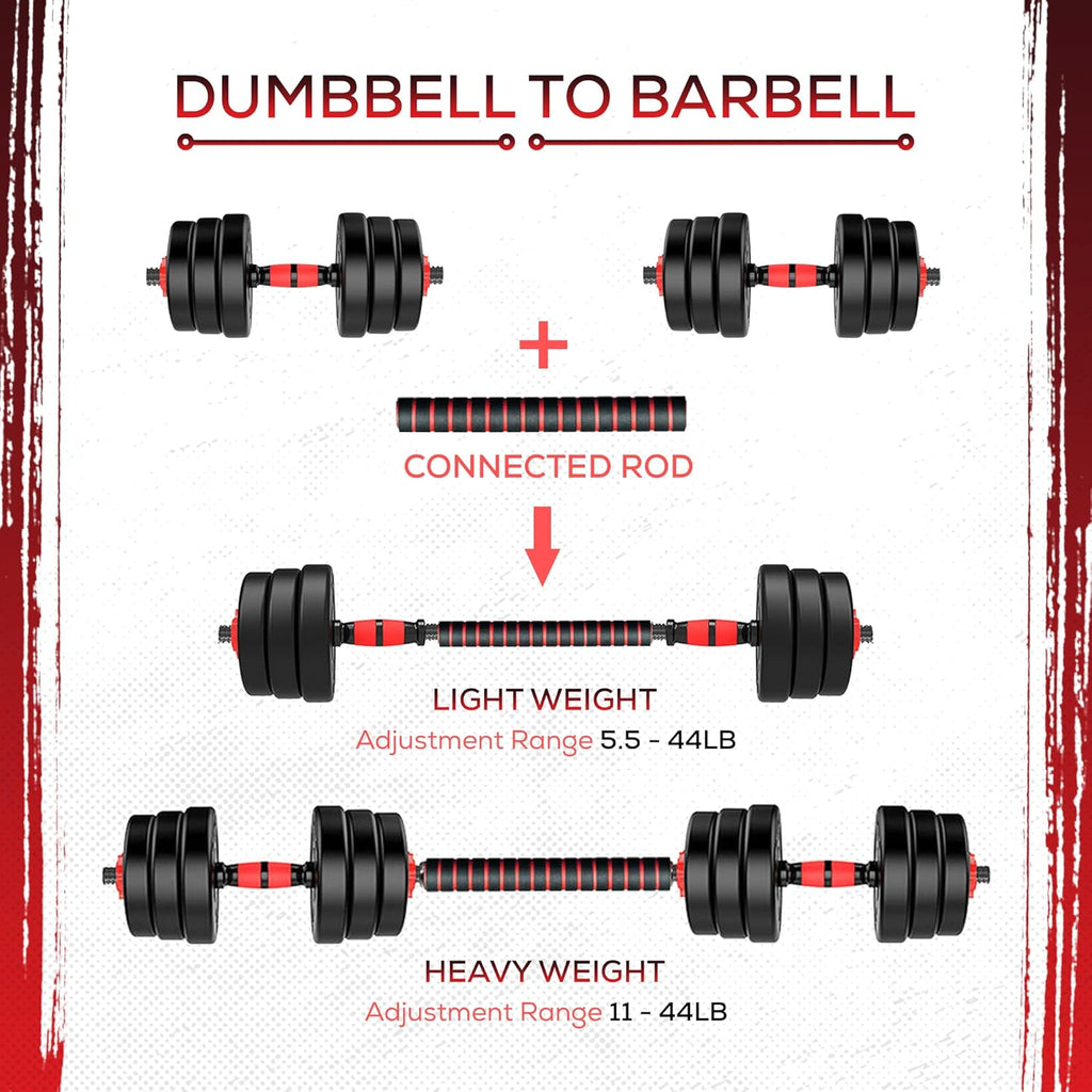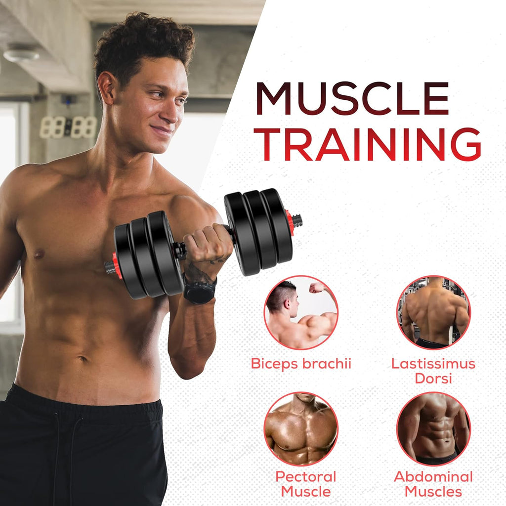 Take your strength training to the next level with this versatile 2-in-1 Dumbbell & Barbell Weight Set. Whether you're looking to build muscle, burn fat, or improve endurance, this adjustable weight set is the perfect addition to your home gym. Designed for men, women, and all fitness levels, it allows you to switch between dumbbells and a barbell in seconds, making it a complete solution for weight training at home.