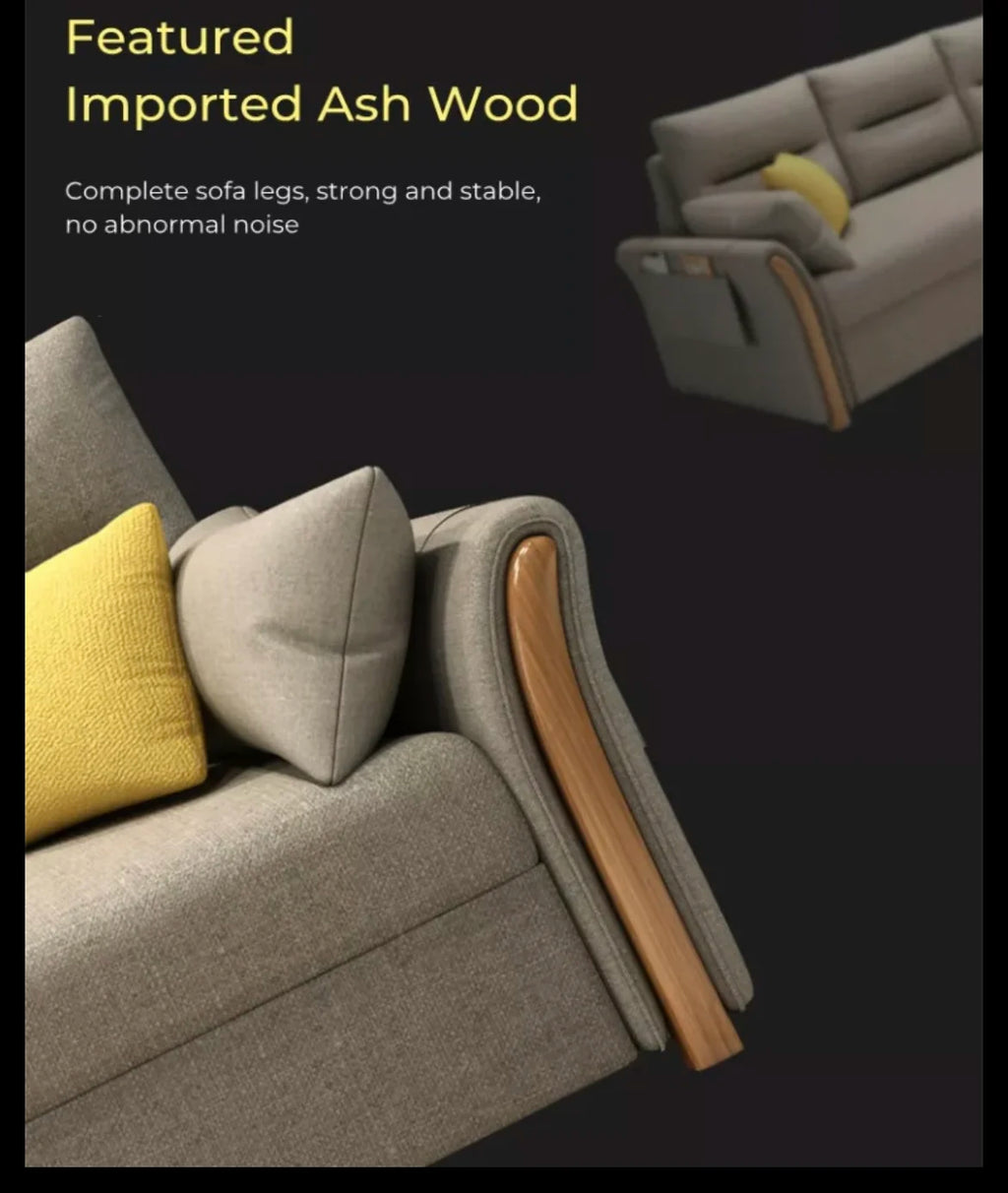 【POLISHED WOOD FINISH & MATCHING CUSHIONS】King Size Sofa Bed comes with two matching cushions and tailored covers to complement the sofa's colour. The armrests feature a stylish polished ash wood finish, adding elegance to any room.